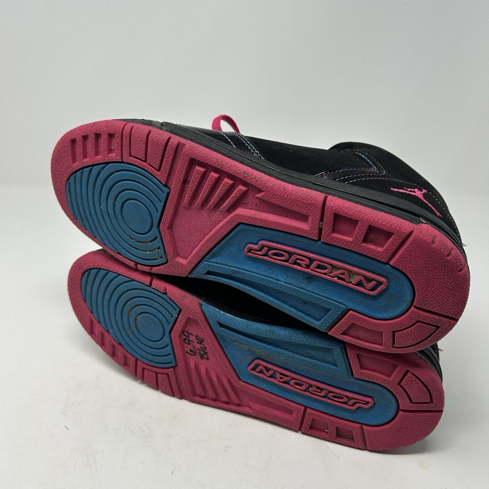 JORDAN FLIGHT MID 2012 AS YOU GO PINK BLACK TEAL PATENT 517629-029. Size 6.5Y