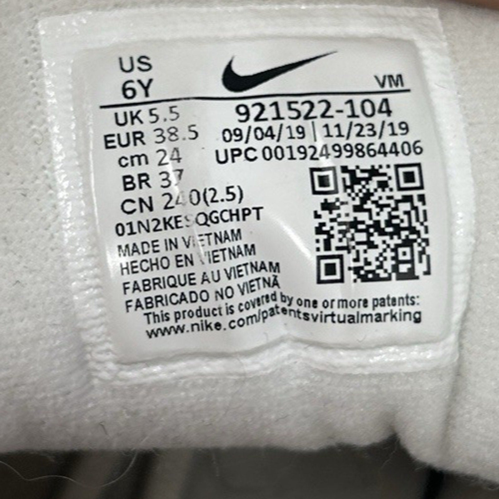 Nike Air Max 97 White Metallic Silver Shoes 921522-104 GS Size 6Y / Womens 7.5