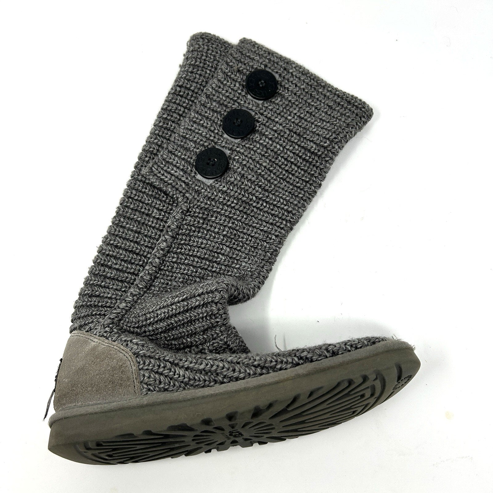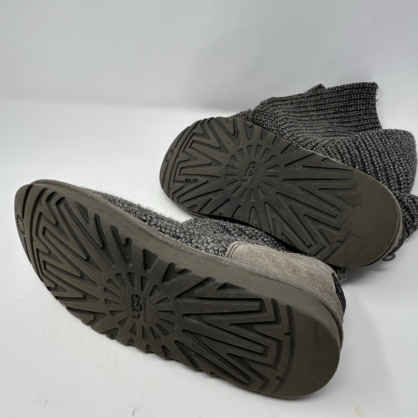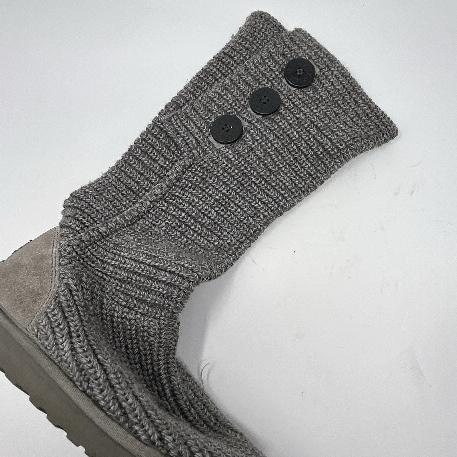 UGG Womens Sz 8 Classic CARDY Winter Boots Buttons Gray Knit Shearling Insoles